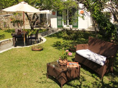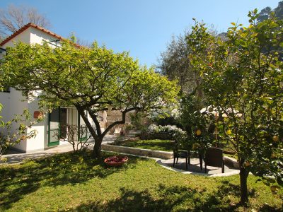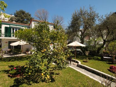Marilena's great passion for plants and their care makes the garden of Casa Augusto a small Mediterranean oasis in any season of the year, and it offers a lush green, fresh and genuine fruits, intense, delicate and bright colors. The upper part is dominated by a large silver cedar, which gives a pleasant shade to the driveway, surrounded by lawns and flowering plants. The stairs are embraced by a large fig tree, which in late August and mid-September gives fruit of great sweetness. On the right side there is the citrus grove, planted with lemons, oranges and tangerines.