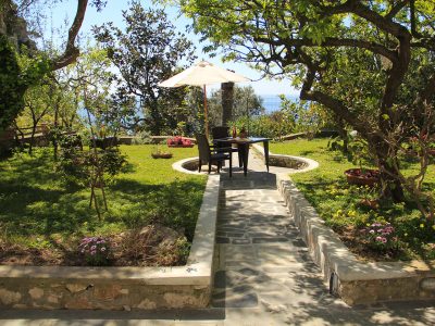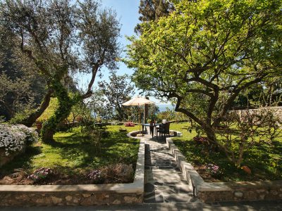 Being surrounded by nature offers an incomparable feeling of peace, you can hear the birds singing and the sight of the light reflections on Mount Solaro or the sea of Marina Piccola is just the final touch of wonderful. Here and there in the garden, you can also see some animals in terracotta created by Marilena.